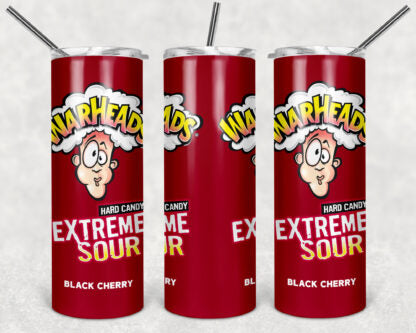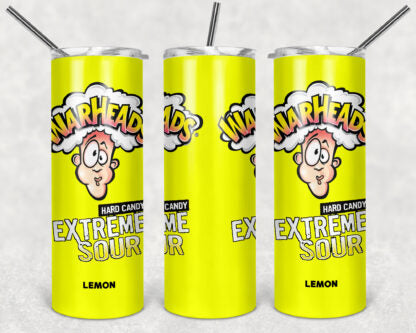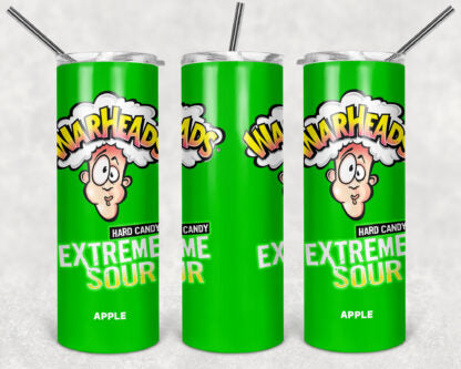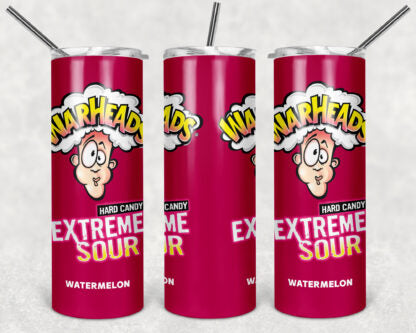 Warheads Candy 20oz Skinny Tumbler custom drinkware - with straw Stainless Steel Cup - Extremely Sour